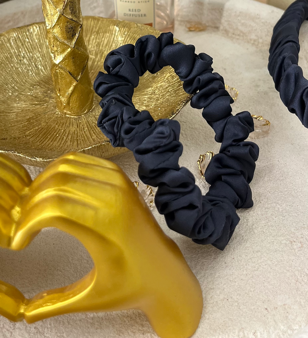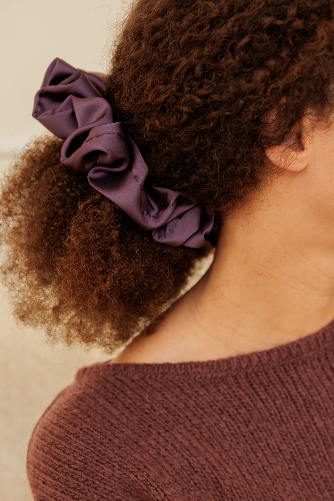 Chou.Chou Maxi rassemble les cheveux les plus volumineux en un seul geste. Sa matière soyeuse glisse sur les cheveux et permet une manipulation en douceur, sans fragiliser et casser les cheveux en plus d'apporter une belle texture et un beau volume satiné à votre chevelure.