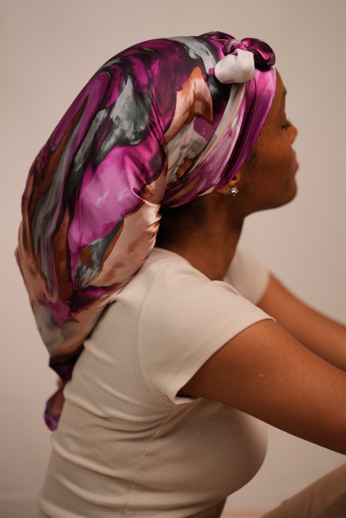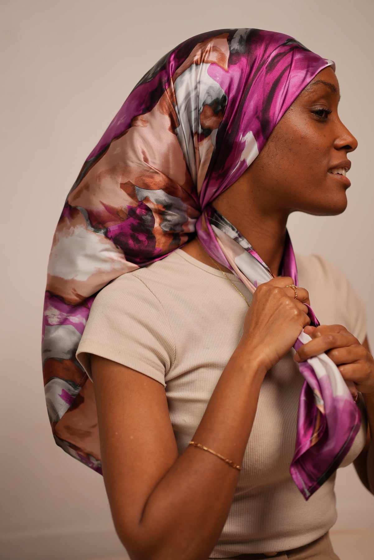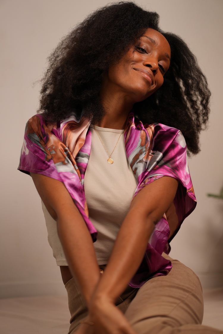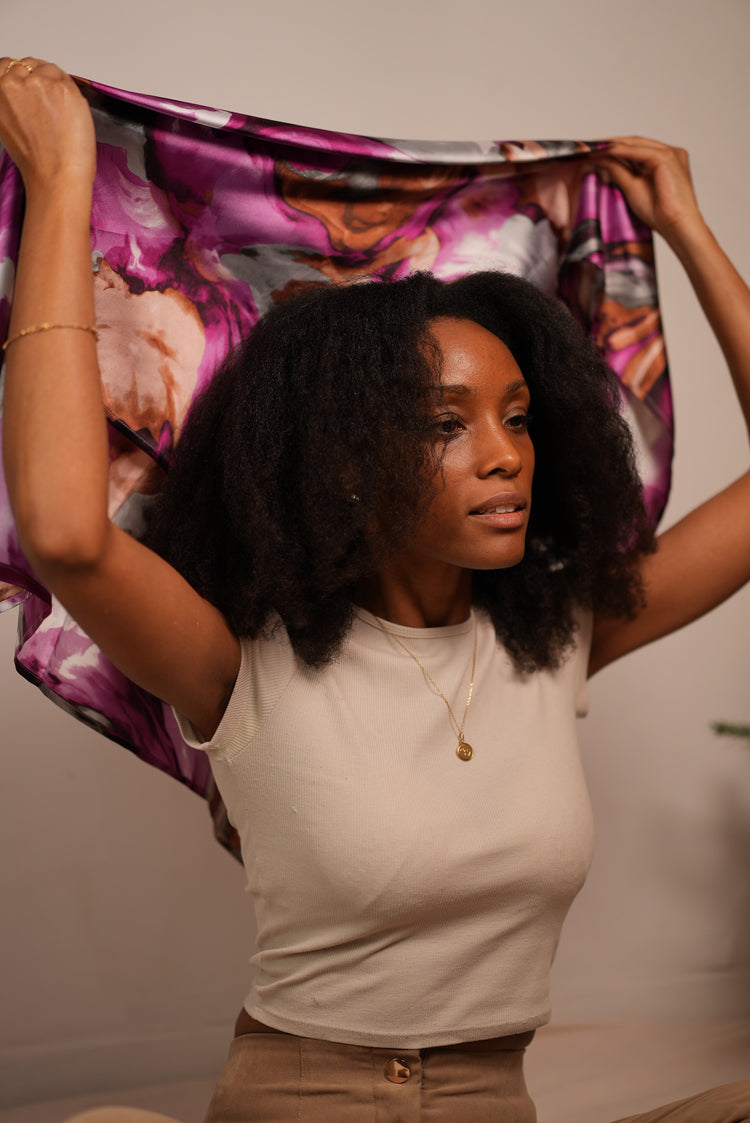 Notre nouveau foulard est fait pour toutes celles qui veulent expérimenter l’incroyable douceur du satin autour du cou, sur les cheveux, sur les épaules, ou simplement pour protéger les cheveux la nuit !